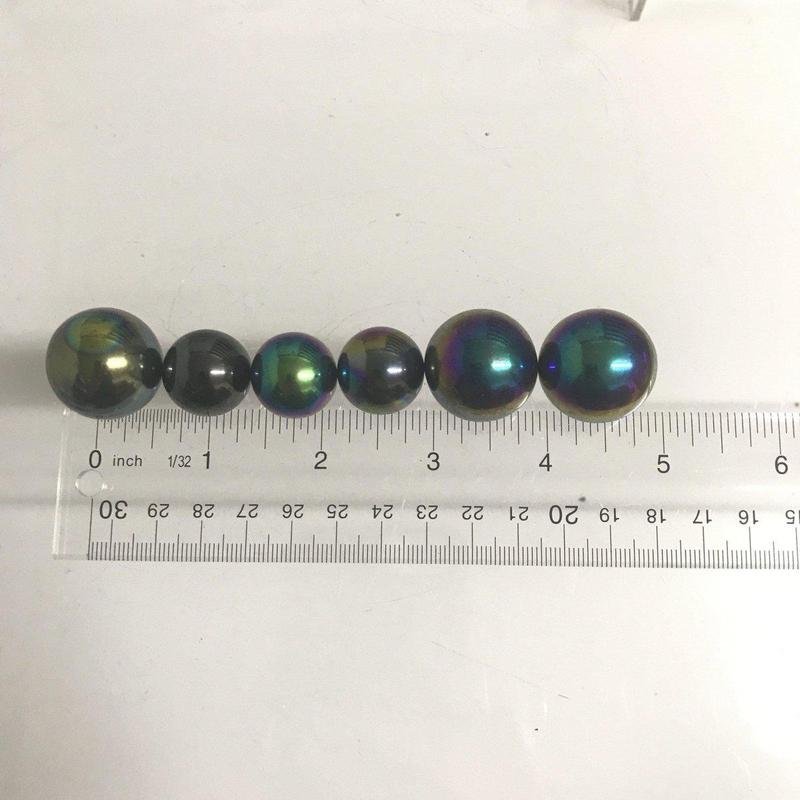 Magnetic Hematite Rainbow Sphere Set comes with 3 large Spheres and 3 Small Spheres. Large Spheres ~ 1 inch Small Spheres ~ 0.75 inch Quantity = 1 Set, 6 Hematite Spheres total Items may vary in size, weight, color, or appearance.