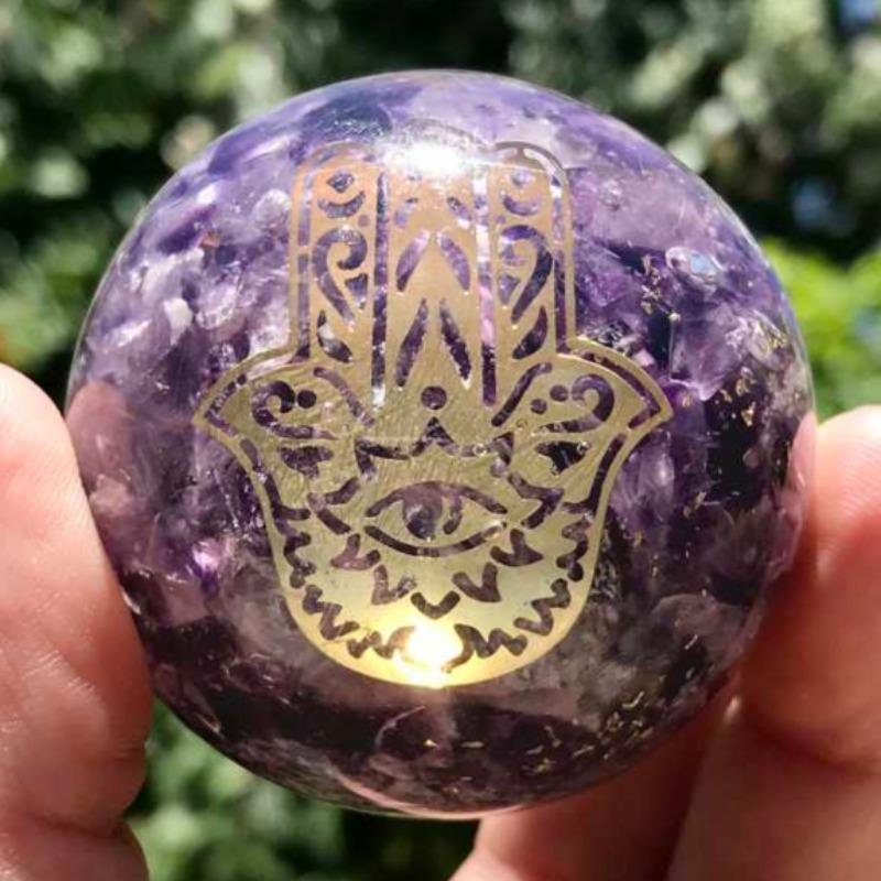 Orgonite Amethyst Sphere -Hamsa Hand- 50mm