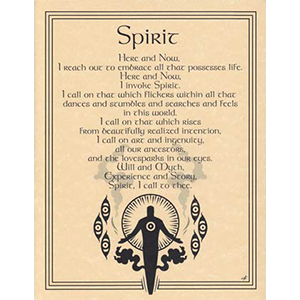 Created to be used as a guide that can aid you in calling upon that which exists within you, the Spirit invocation poster helps you to invoke the essence of life, or Spirit, which is regarded by some as the fifth element. 8 1/2″ x 11″.