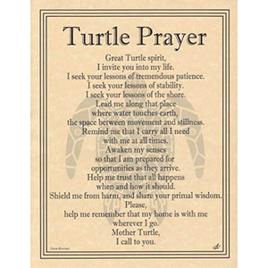 This beautiful parchment poster mingles the tribal artwork of Eliot Alexander with the poetic prayer of Travis Bowman to provide you with a prayer to the Great Turtle Spirit. 8 1/2″ x 11″